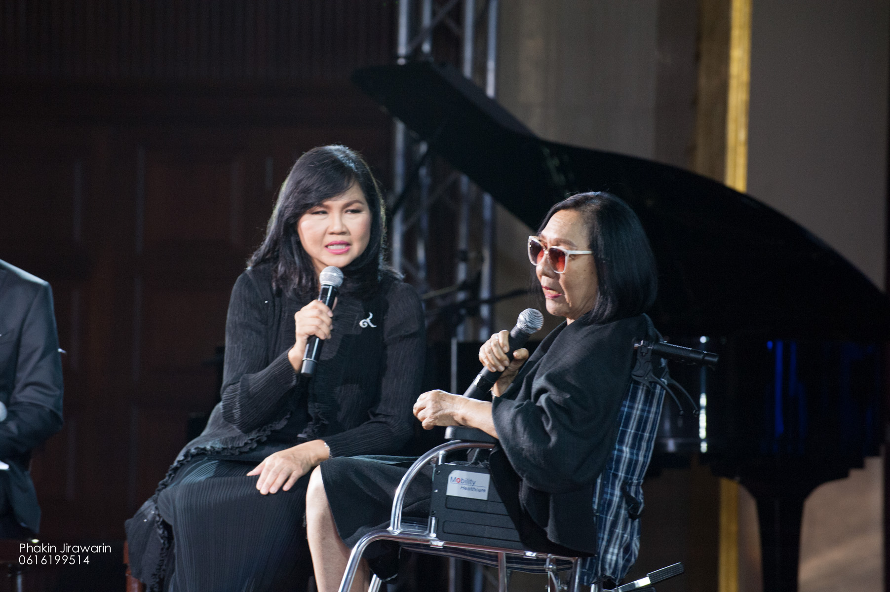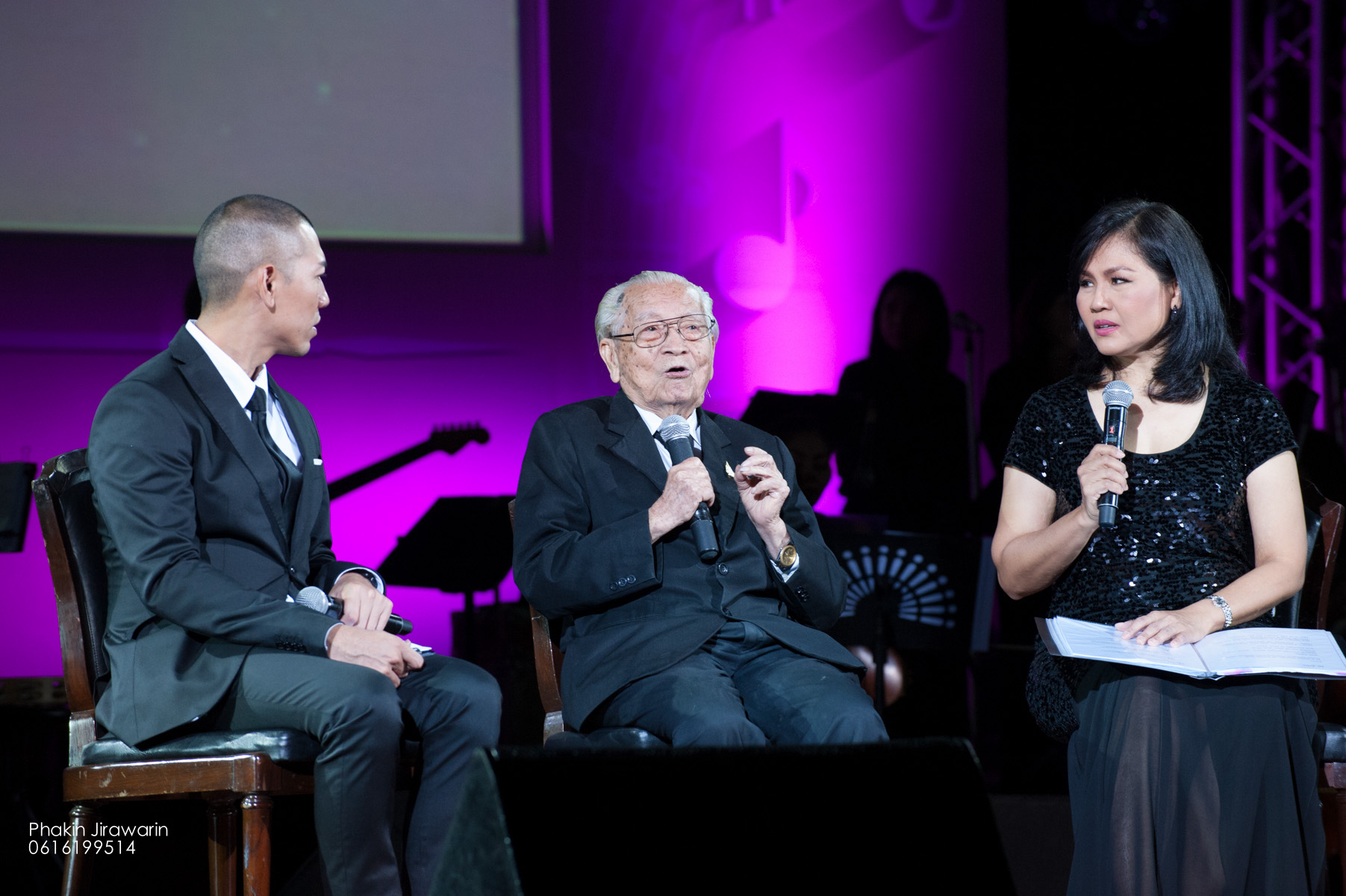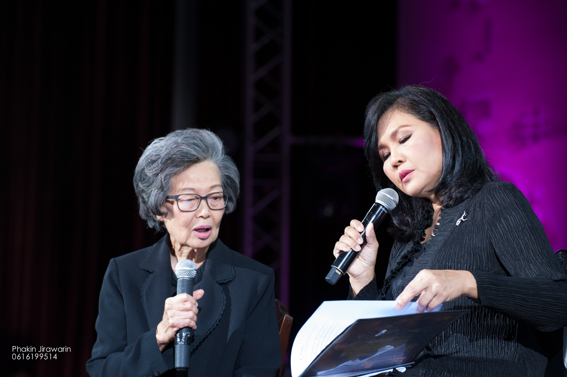 บ่ายวันนั้น นอกจากจะได้ดื่มด่ำไปกับความไพเราะของเพลงพระราชนิพนธ์แล้ว เราพี่น้องชาวอักษรฯ ยังได้ร่วมซาบซึ้งประทับใจไปกับเรื่องราว เรื่องเล่าจากผู้ประพันธ์คำร้อง ศ. ดร.ประเสริฐ ณ นคร ผู้ประพันธ์คำร้องภาษาไทยในเพลง “ใกลรุ่ง” “ชะตาชีวิต” “ในดวงใจนิรันดร์” “แว่ว” และ “เกษตรศาสตร์” และ รศ.สดใส พันธุมโกมล (อบ.20) ผู้ประพันธ์คำร้องเพลง “Candlelight Blues” ซึ่งทั้งสองท่านได้ถ่ายทอดความทรงจำครั้งทูลเกล้าฯ ถวายเนื้อเพลงด้วยความปีติเต็มหัวใจ รวมถึง ผศ.พาณี บุญทวี ที่ได้มาเล่าถึงความสำคัญของการใช้ภาษาที่งดงามในบทเพลง ซึ่งพิธีกรทั้งสอง ผุสชา โทณะวณิก และ นิติ ชัยชิตาธร ก็สามารถร้อยเรียงเรื่องราวให้เกิดความประทับใจและสนุกสนานได้ตลอดสามชั่วโมงเต็ม