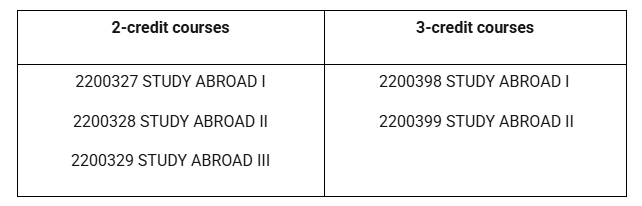 • If students request credit transfer for more than one Study Abroad course, the courses must be of the same credit numbers.