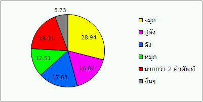 ภาพที่ 3 และ 4 : pie chart และ ตารางของหน่วยอรรถ “จมูก” (พ.ศ. 2545)