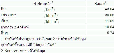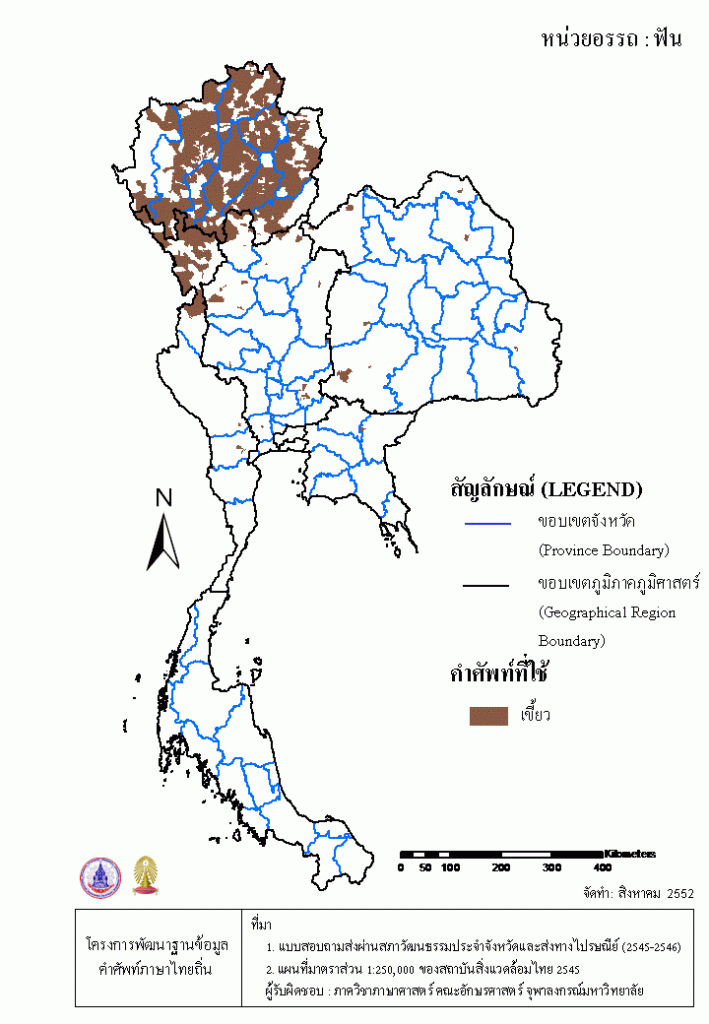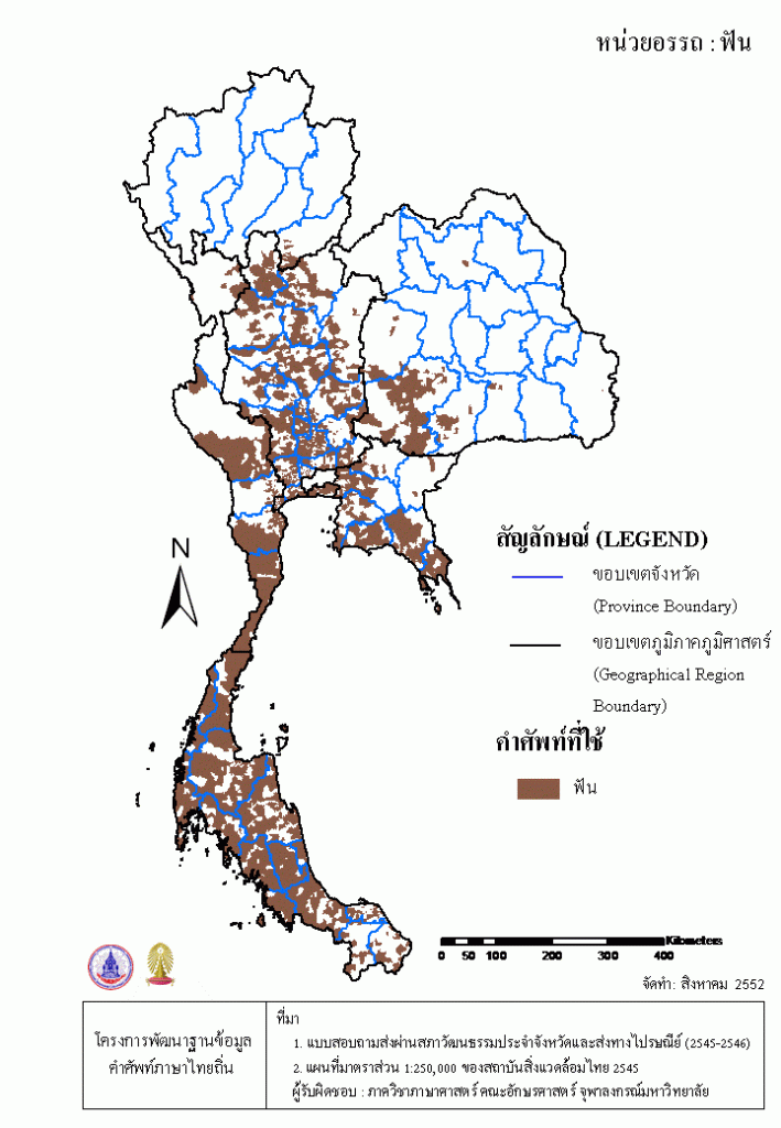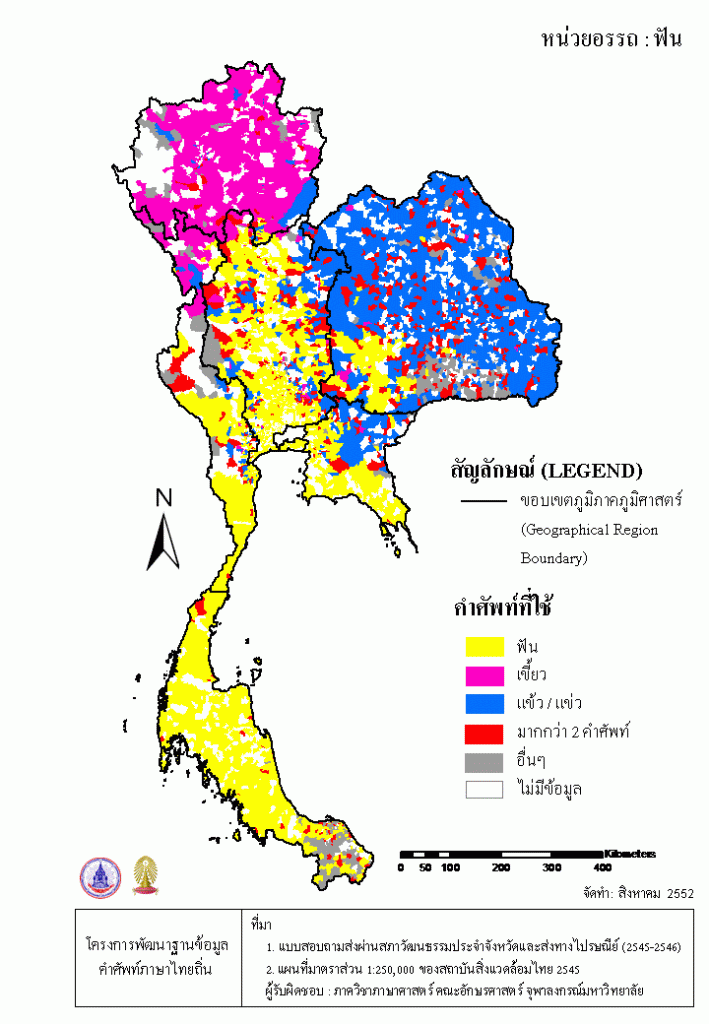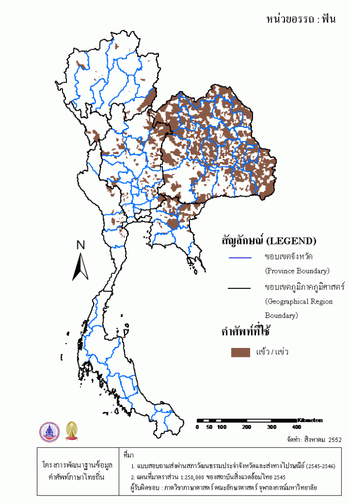 Project คลังแผนที่คำศัพท์ภาษาถิ่น ประเทศไทย (พ.ศ. 2545) ฟัน