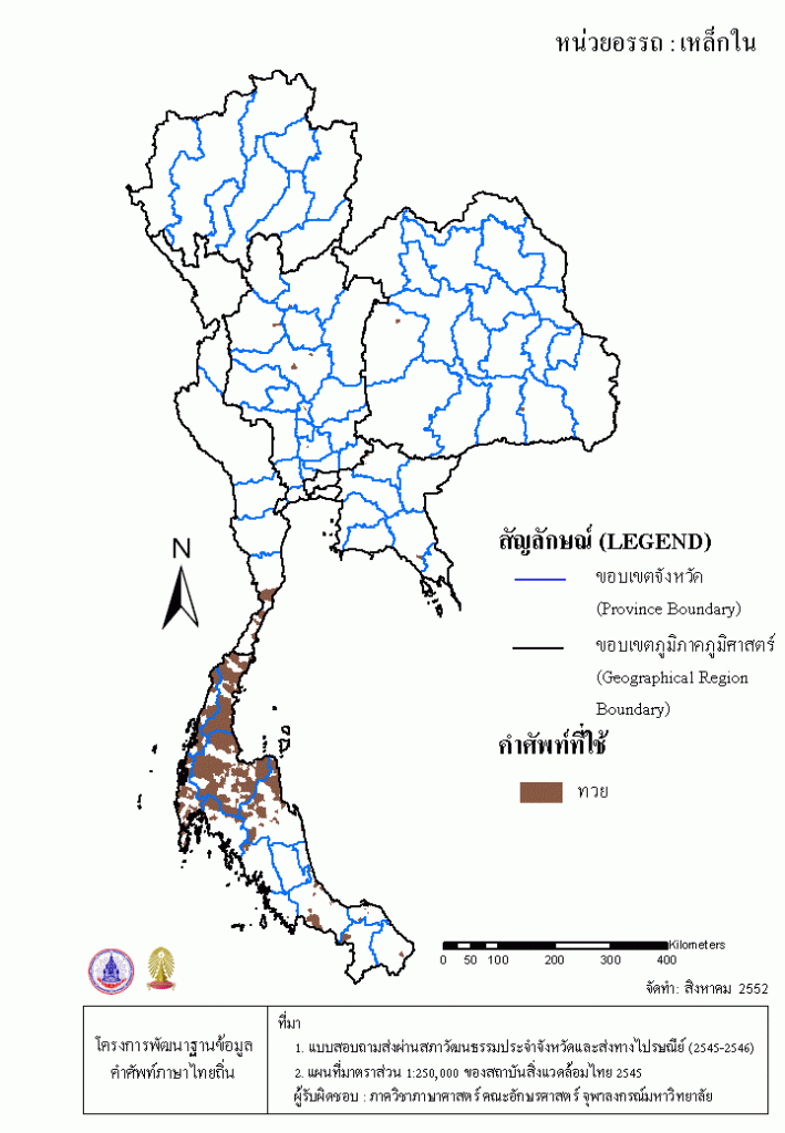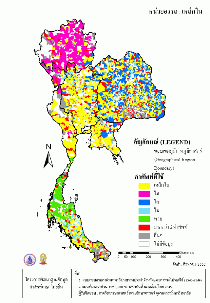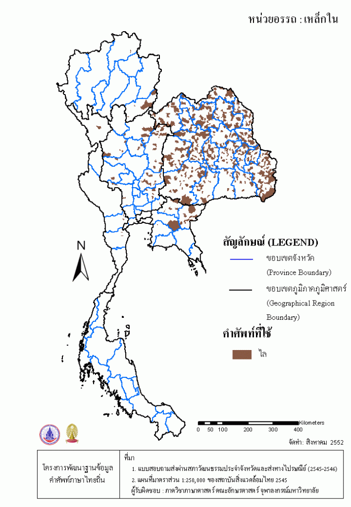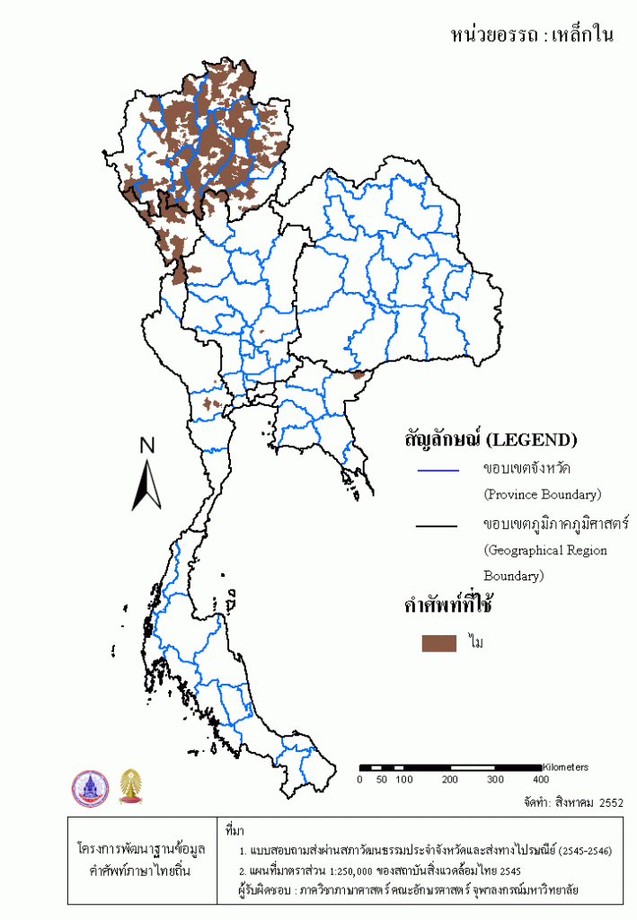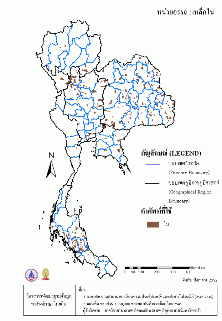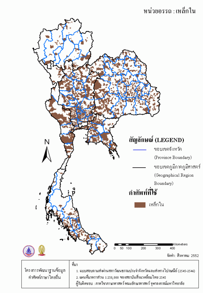 Project คลังแผนที่คำศัพท์ภาษาถิ่น ประเทศไทย (พ.ศ. 2545) เหล็กใน