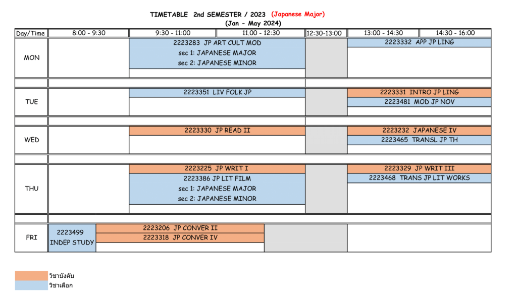 2. หลักสูตรอักษรศาสตรบัณฑิต (ภาษาญี่ปุ่น) ฉบับปรับปรุงสำหรับนิสิตรหัส 61-65