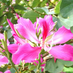ชงโค คือ ต้นไม้ประจำคณะอักษรศาสตร์เป็นไม้ผลัดใบขนาดเล็ก ความสูงประมาณ ๕– ๑๐ เมตร มีถิ่นกำเนิด ในเอเชียตะวันออกเฉียงใต้ ขึ้นในป่าโปร่งผสมนิยมนำปลูกประดับตามอาคารสถานที่ต่างๆ เพราะลำต้นมีลีลาที่งดงาม และดอกที่สวยงามคล้ายดอกกล้วยไม้ กลีบดอกสีชมพู ออกดอกหลังจากที่ใบใหม่ผลิแล้ว คือหลังเดือนเมษายน ใบเป็นใบเดี่ยว รูปหัวใจปลายทู่และเว้าลึกมองดูคล้ายใบแฝดติดกัน ผลัดใบในฤดูหนาวระหว่างเดือนพฤศจิกายน ถึง เดือนธันวาคม แตกใบใหม่ประมาณเดือนเมษายนถึงพฤษภาคม ต้นชงโคเป็นต้นไม้ที่ปลูกง่ายเจริญเติบโตได้ดีในดินทั่วๆไป