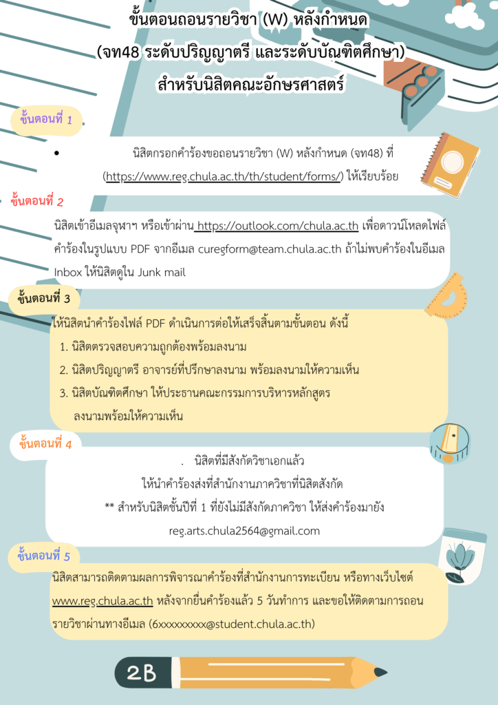 ขั้นตอนการยื่นคำร้องต่าง ๆ สำหรับนิสิตอักษรฯ