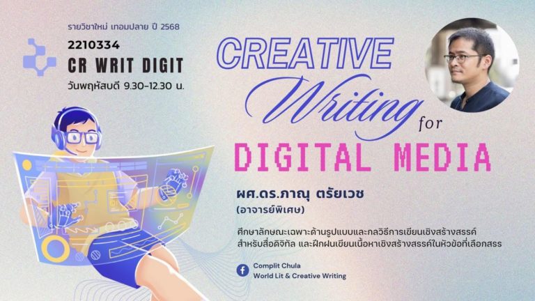 นิสิตที่ประสงค์จะลงทะเบียนเรียนรายวิชา 2201227 ภาษาไทยเพื่อวิชาชีพยุคดิจิทัล ภาคปลาย ปีการศึกษา 2568 (กลุ่มวิชาทักษะการแสวงหาความรู้และการจัดการในโลกดิจิทัล) ในรอบการลงทะเบียนรอบที่ 2 สามารถเลือกตอนเรียนที่ยังมีที่นั่งว่างคงเหลือ ได้แก่ ตอนเรียนที่ 5-12 ***โปรดเลือกตอนเรียนแบบ 5-12 เพื่อเพิ่มโอกาสให้ได้รับการจัดสิทธิ์ (ลงทะเบียนเรียนสำเร็จ)*** สอบถามข้อมูลเพิ่มเติม: อาจารย์ ดร.อัสนี พูลรักษ์ (Assanee.P@chula.ac.th)