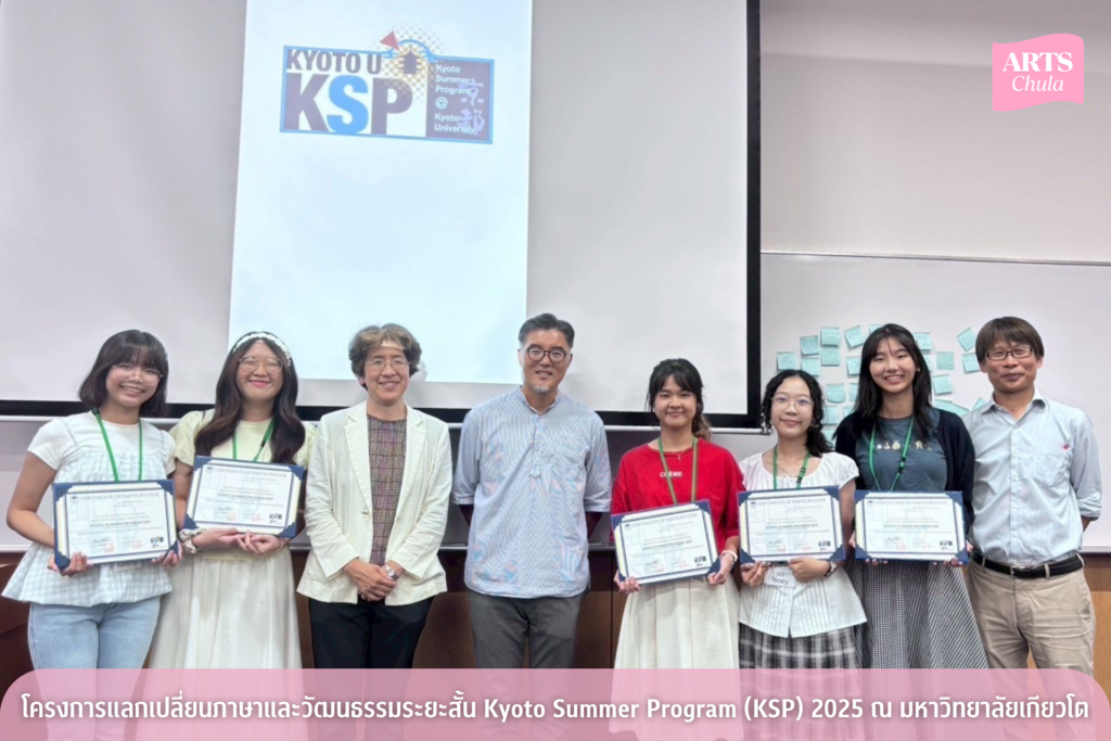 ทุนโครงการแลกเปลี่ยนภาษาและวัฒนธรรมระยะสั้น Kyoto Summer Program (KSP) 2025 ณ มหาวิทยาลัยเกียวโต ประเทศญี่ปุ่นThe Japan Foundation ได้มอบทุนสนับสนุนการศึกษาเพื่อเข้าร่วมโครงการแลกเปลี่ยนภาษาและวัฒนธรรมระยะสั้น Kyoto Summer Program 2025 (Travel Support for Students to Attend to Kyoto Summer Program 2025) ณ มหาวิทยาลัยเกียวโต ประเทศญี่ปุ่น เป็นระยะเวลา 2 สัปดาห์ ระหว่างวันที่ 24 กรกฎาคม – 9 สิงหาคม พ.ศ.2568 แก่นิสิตเอกวิชาภาษาญี่ปุ่น ชั้นปีที่ 2 จำนวน 5 ทุน ดังมีรายชื่อต่อไปนี้ 1. นางสาวชาลิสา ลีนะวัต 2. นางสาวณิชาภัทร สันติภาพจันทรา 3. นางสาวพัทธนันท์ […]