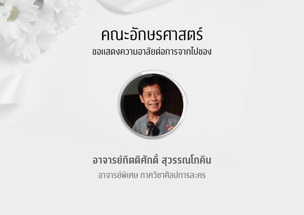 คณะอักษรศาสตร์ขอแสดงความอาลัยต่อการจากไปของอาจารย์กิตติศักดิ์ สุวรรณโภคิน อาจารย์พิเศษ ภาควิชาศิลปการละคร