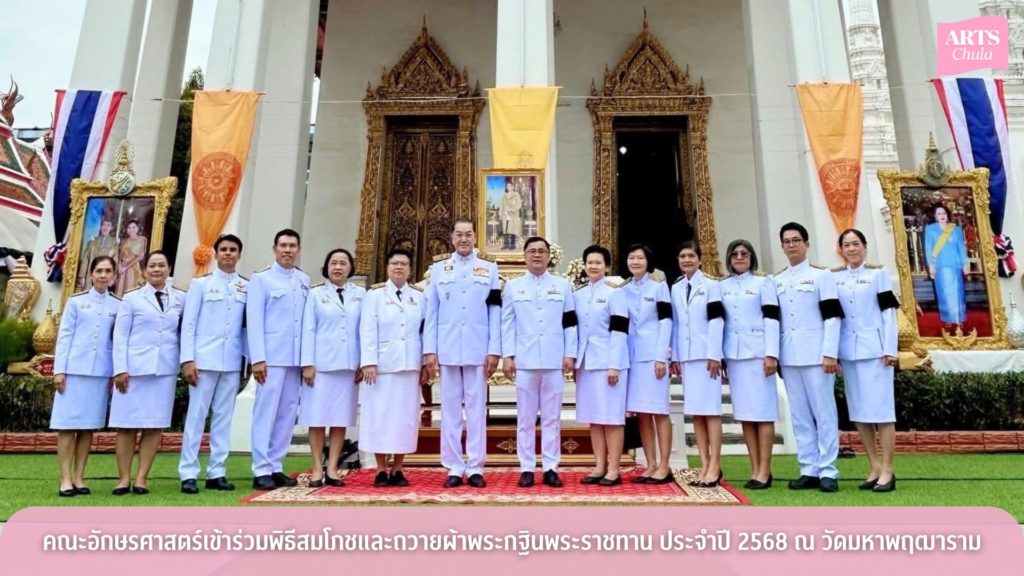 วันอังคารที่ 28 ตุลาคม 2568 คณะอักษรศาสตร์ จุฬาลงกรณ์มหาวิทยาลัย นำโดยรองศาสตราจารย์ ดร.ศิริพร ภักดีผาสุข รองคณบดี พร้อมด้วยผู้ช่วยคณบดี คณาจารย์ ผู้อำนวยการฝ่ายบริหาร และหัวหน้างานฝ่ายต่าง ๆ เข้าร่วมพิธีสมโภชและถวายผ้าพระกฐินพระราชทาน โดยจุฬาลงกรณ์มหาวิทยาลัย ประจำปี 2568 ณ วัดมหาพฤฒารามวรวิหาร เขตบางรัก จังหวัดกรุงเทพมหานคร