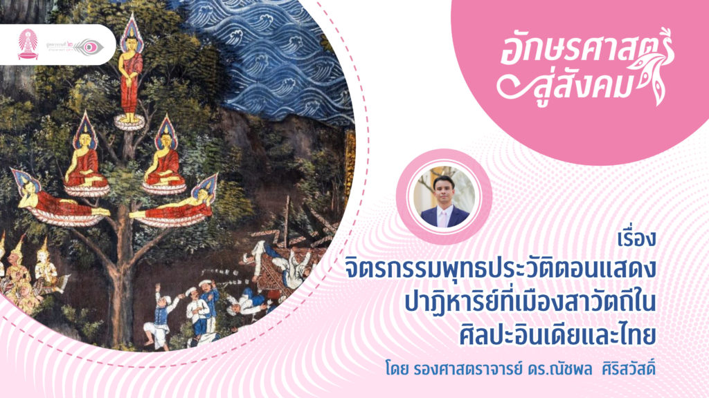 ขอเชิญฟังบรรยายในโครงการอักษรศาสตร์สู่สังคม เรื่อง “จิตรกรรมพุทธประวัติตอนแสดงปาฏิหาริย์ที่เมืองสาวัตถีในศิลปะอินเดียและไทย” โดย รองศาสตราจารย์ ดร. ณัชพล ศิริสวัสดิ์ ภาควิชาภาษาตะวันออก ————————————————————————– ท่านสามารถรับชมการบรรยายย้อนหลังได้ ที่นี่https://www.youtube.com/watch?v=NwUN354Fb_4