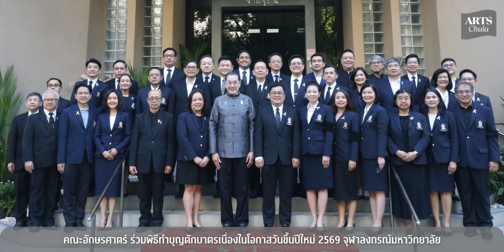วันที่ 5 มกราคม 2569 เวลา 07.30 น. คณะอักษรศาสตร์ จุฬาลงกรณ์มหาวิทยาลัย นำโดยรองศาสตราจารย์ ดร.สุรเดช โชติอุดมพันธ์ คณบดี พร้อมด้วยรองคณบดี และคณะผู้บริหารคณะอักษรศาสตร์ ได้เข้าร่วมพิธีตักบาตรเนื่องในโอกาสวันขึ้นปีใหม่ พ.ศ. 2569 ในโอกาสนี้ ศาสตราจารย์ (พิเศษ) ดร.สุรเกียรติ์ เสถียรไทย นายกสภาจุฬาลงกรณ์มหาวิทยาลัย และ ศาสตราจารย์ ดร.วิเลิศ ภูริวัชร อธิการบดีจุฬาลงกรณ์มหาวิทยาลัย ร่วมตักบาตรพระสงฆ์ จำนวน 36 รูป พร้อมกล่าวให้โอวาทและอวยพรปีใหม่แก่ประชาคมจุฬาฯ และถ่ายภาพร่วมกับผู้บริหารจุฬาลงกรณ์มหาวิทยาลัย ณ ลานพระศรีมหาโพธิ์ หน้าอาคารจามจุรี 4