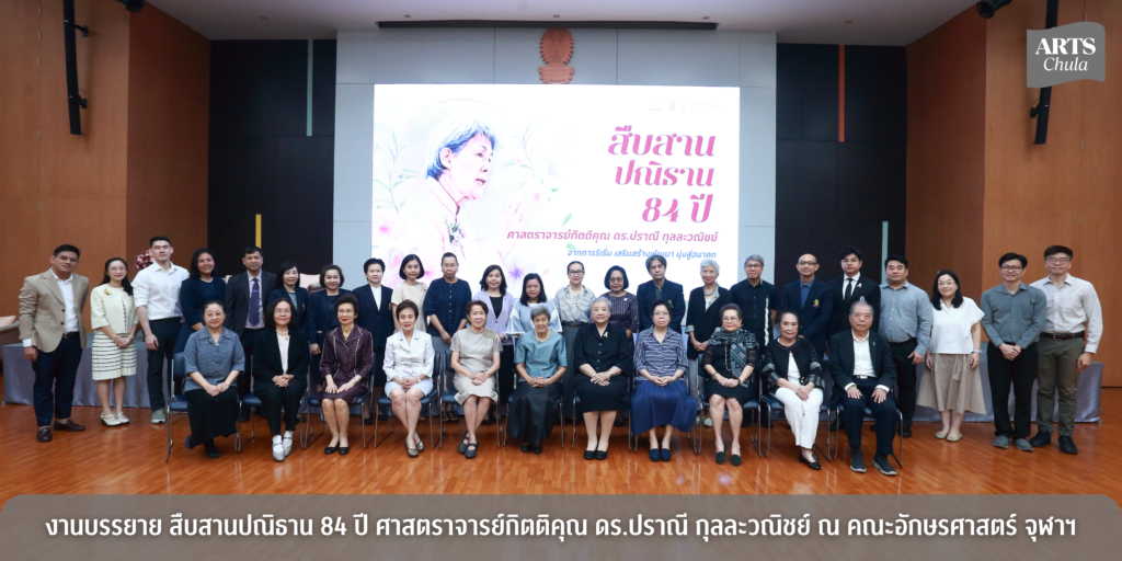 เมื่อวันที่ 6 กุมภาพันธ์ 2569 คณะอักษรศาสตร์ โดยภาควิชาภาษาศาสตร์ และภาควิชาภาษาไทย และสถาบันภาษาไทยสิรินธร จุฬาลงกรณ์มหาวิทยาลัย จัดการบรรยาย “สืบสานปณิธาน 84 ปี ศาสตราจารย์กิตติคุณ ดร.ปราณี กุลละวณิชย์” ณ ห้องอเนกประสงค์ ชั้น 9 อาคารมหาจักรีสิรินธร คณะอักษรศาสตร์ จุฬาลงกรณ์มหาวิทยาลัย ภายในงานประกอบด้วยการบรรยายทางวิชาการจากผู้ทรงคุณวุฒิ ในหัวข้อต่างๆ ดังนี้ “กรุงเทพ–คุนหมิง–หนานหนิง: เส้นทางการวิจัยด้านภาษาศาสตร์เชิงประวัติและภาษาตระกูลไท” โดย รองศาสตราจารย์ ดร.พิทยาวัฒน์ พิทยาภรณ์ “จากรากสู่ต้น: ศูนย์การแปลและการล่ามเฉลิมพระเกียรติ” โดย ศาสตราจารย์กิตติคุณถนอมนวล โอเจริญ “จากจุดเริ่มต้นสู่ปัจจุบันของศูนย์ทดสอบทางวิชาการแห่งจุฬาลงกรณ์มหาวิทยาลัย” โดย ผู้ช่วยศาสตราจารย์ ดร.ณภัทร ชัยมงคล “จากวิจัยสู่การตีพิมพ์: บทบาทของ MANUSYA ในการขับเคลื่อนองค์ความรู้ด้านมนุษยศาสตร์” โดย รองศาสตราจารย์ ดร.ณัฐมา พงศ์ไพโรจน์ “เพาะต้นกล้าภาษาไทย: จากวิสัยทัศน์สู่ ‘โครงการช้างเผือก’” โดย รองศาสตราจารย์ […]