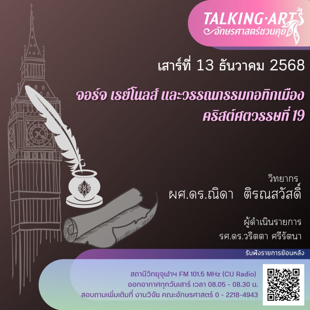 “Talking Arts: อักษรศาสตร์ชวนคุย” ประจำวันเสาร์ที่ 20 ธันวาคม 2568