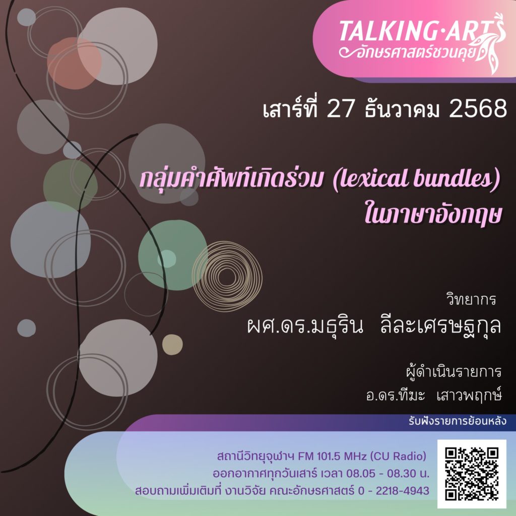 “Talking Arts: อักษรศาสตร์ชวนคุย” ประจำวันเสาร์ที่ 27 ธันวาคม 2568