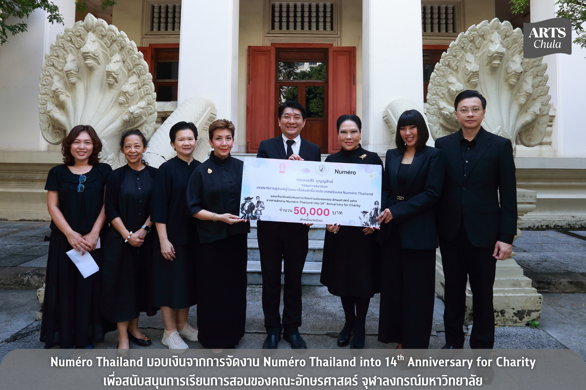 เมื่อวันที่ 11 พฤศจิกายน พ.ศ. 2568 คุณอมรสิริ บุญญสิทธิ์ คุณเจนจิรา พรประภา และคุณศราวุฒิ รัชนกูลกรรมการสมาคมฯ บรรณาธิการผู้พิมพ์ผู้โฆษณาสื่อลิขสิทธิ์จากประเทศฝรั่งเศส Numéro Thailand มอบเงินเพื่อสนับสนุนการเรียนการสอนของคณะอักษรศาสตร์ จุฬาลงกรณ์มหาวิทยาลัย จากการจัดงาน Numéro Thailand into 14th Anniversary for Charity จำนวน 50,000 บาท การนี้ รองศาสตราจารย์ ดร.สุรเดช โชติอุดมพันธ์ คณบดีคณะอักษรศาสตร์ เป็นผู้รับมอบ