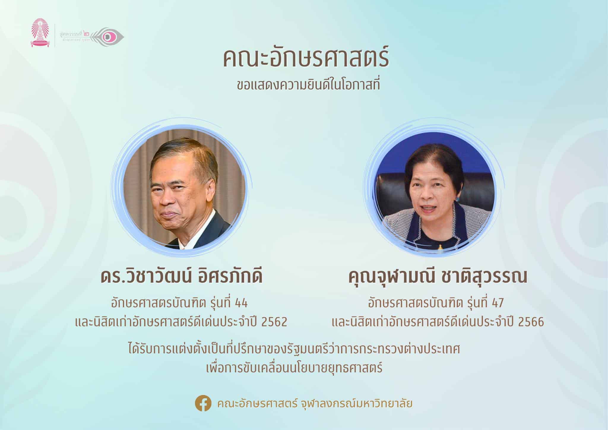 คณะอักษรศาสตร์ขอแสดงความยินดีเนื่องในโอกาสที่ ดร.วิชาวัฒน์ อิศรภักดี อักษรศาสตรบัณฑิต รุ่นที่ 44