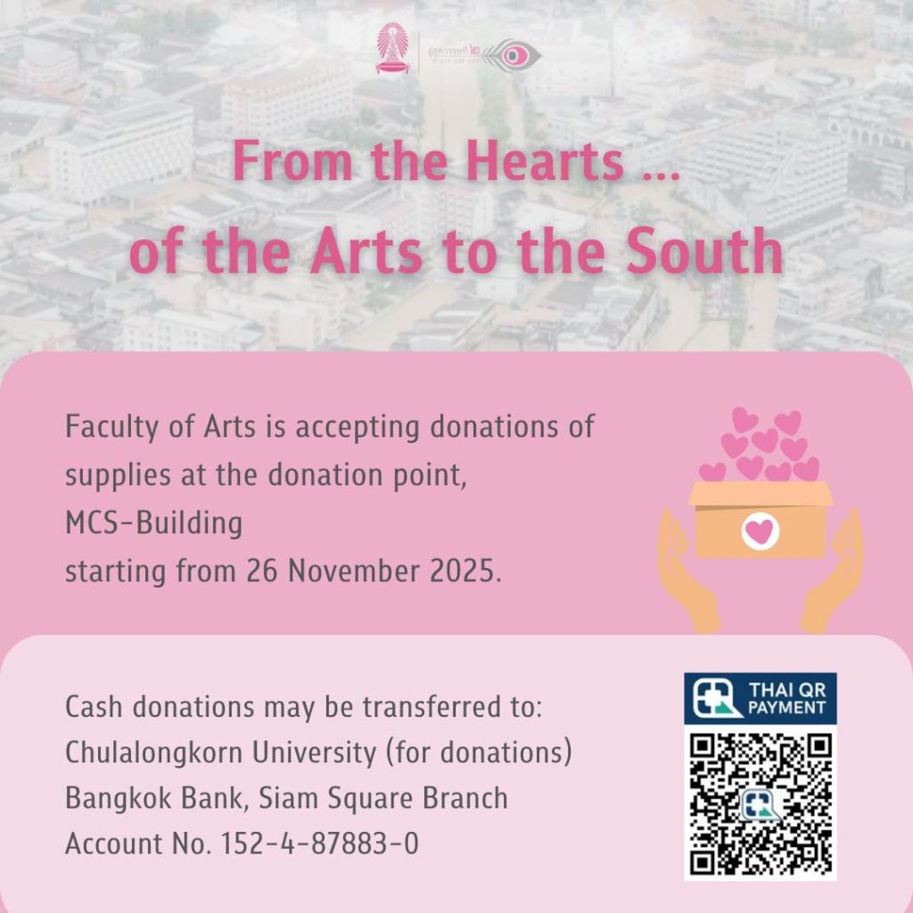 📦 Faculty of Arts is accepting donations of supplies at the donation point, MCS-Building, starting from 26 November 2025.