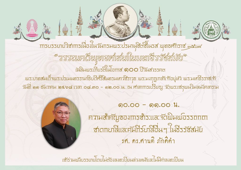 การบรรยายวิชาการเนื่องในวันกรมพระปรมานุชิตชิโนรส พุทธศักราช ๒๕๖๘