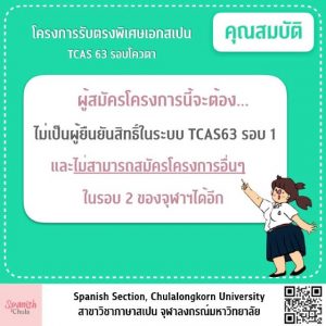 โครงการรับตรงพิเศษ สาขาวิชาเอกภาษาสเปน TCAS 63 รอบ 2 (โควตา)
