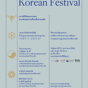 ขอเชิญเข้าร่วมงานเทศกาลเกาหลีครั้งที่ 10 เสวนา: ‘เกาหลีใต้นอกกระแส อ่านสังคมผ่านเรื่องสั้นร่วมสมัย’ เปิดตัวหนังสือเรื่อง ‘มี ในเมษายน ซอล ในกรกฎาคม’ กิจกรรมวัฒนธรรม: สาธิตการทำอาหารเกาหลีและการแต่งกายชุดประจำชาติเกาหลี วันอังคารที่ 21 มกราคม 2563 เวลา 9.30 – 13.00 น.ณ โถงชั้น 1 อาคารมหาจักรีสิรินธร คณะอักษรศาสตร์ จุฬาลงกรณ์มหาวิทยาลัย ลงทะเบียนเข้าร่วมงานได้ที่ https://forms.gle/syBQAhP7xxiR3EKJA ติดตามข่าวสารของกิจกรรมได้ที่ https://www.facebook.com/events/521625048447247/ ไม่มีค่าใช้จ่ายในการเข้าร่วมงาน #เทศกาลเกาหลี #koreanfestival…