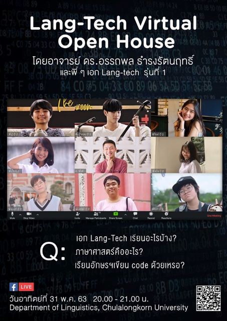 ชวนทุกคนมาหาคำตอบกันที่ ‘Lang-Tech Virtual Open House’ เปิดบ้านคุยกับ อาจารย์ ดร.อรรถพล (อ.พี่เต้) และรุ่นพี่เอกแลงเทครุ่นที่ 1 ที่จะมาตอบข้อสงสัยให้กับน้อง ๆ ทาง Facebook Live ของภาควิชาภาษาศาสตร์ คณะอักษรศาสตร์ จุฬาลงกรณ์มหาวิทยาลัย ในวันอาทิตย์ที่ 31 พ.ค. นี้ เวลา 20.00 – 21.00 น.