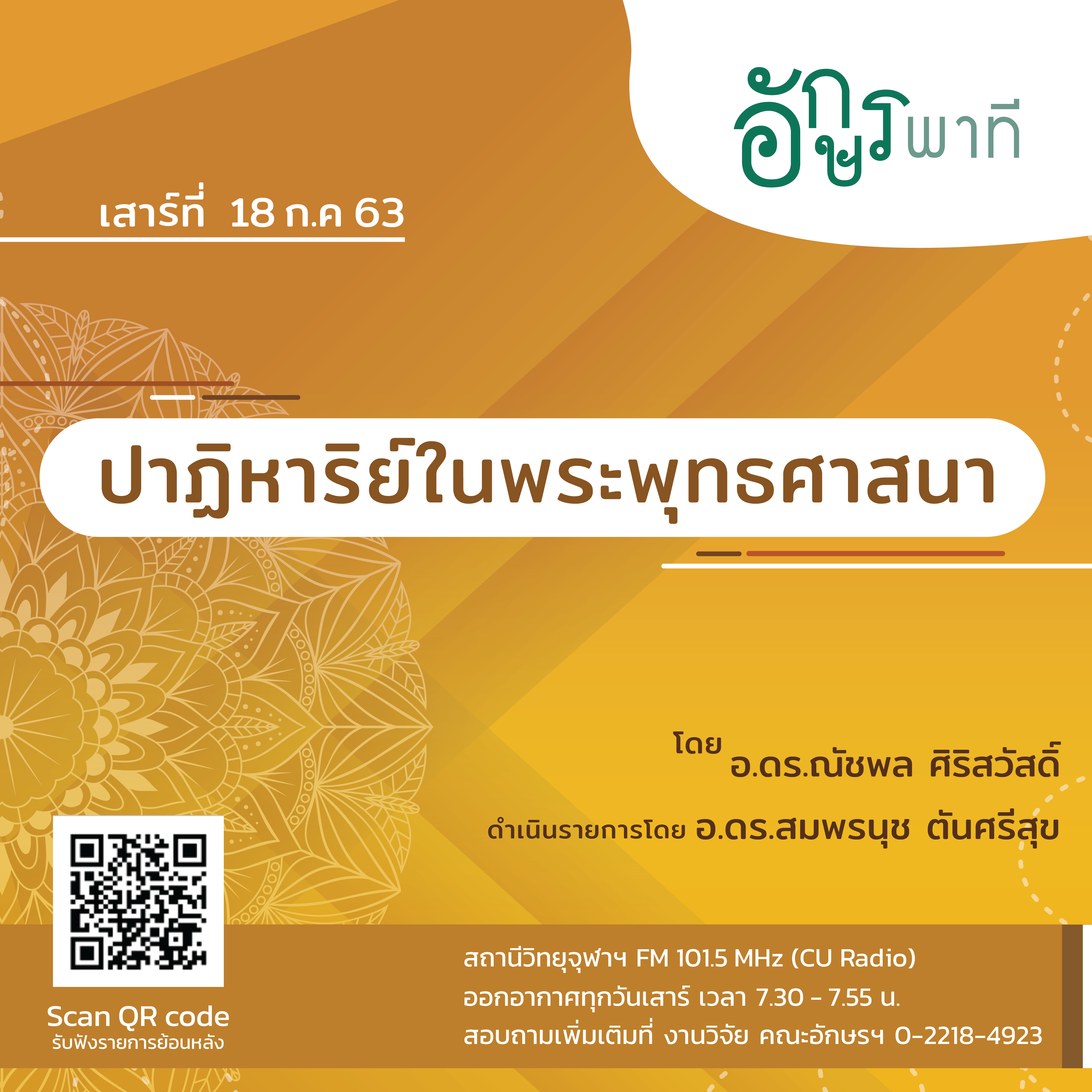 3. 18 กรกฎาคม 2563 เรื่อง “ปาฏิหาริย์ในพระพุทธศาสนา” โดย อ.ดร.ณัชพล ศิริสวัสดิ์