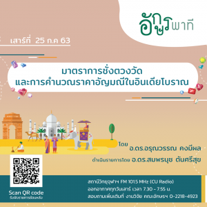 4. 25 กรกฎาคม 2563 เรื่อง “มาตราการชั่งตวงวัดและการคำนวณราคาอัญมณีในอินเดียโบราณ” โดย อ.ดร.อรุณวรรณ คงมีผล