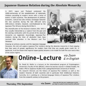 an online lecture titled “Japanese-Siamese Relation during the Absolute Monarchy”
